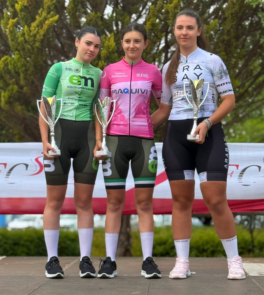 La ventaja, importante, encontraría un asidero adicional en la táctica desplegada por la estructura placentina en la etapa dominical en línea, 56 kilómetros que incluían el ascenso al Alto de Siles y al Alto de Los Chozos. Allí Rocío Martín era la mejor entre las nueve cadetes que llegaron el grupo principal, con Elena Martínez firmando la tercera plaza y Lospitao cerrando el maillot rosa de líder definitivo.