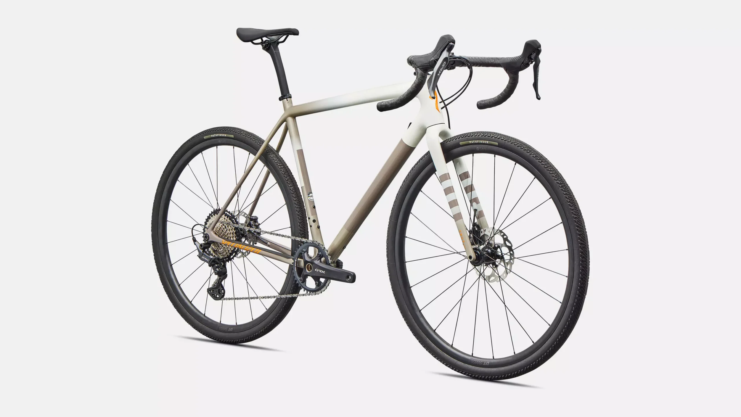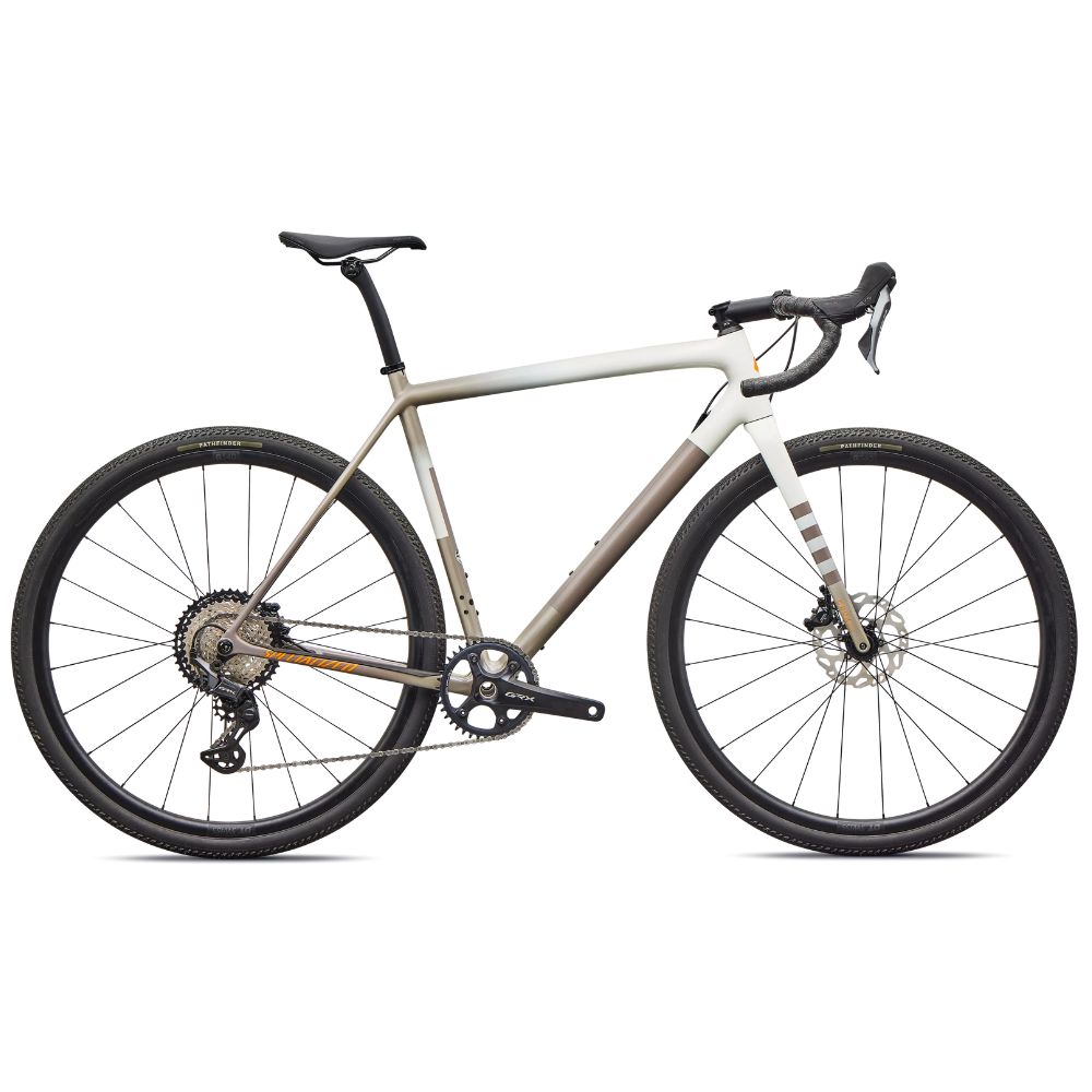 Esta Crux Comp viene equipada con un fiable y preciso grupo Shimano GRX de 12 velocidades, resistentes ruedas DT G540 Disc, y neumáticos Pathfinder 2Bliss Ready de 700×40 mm que ofrecen un excelente agarre incluso en terrenos complicados.