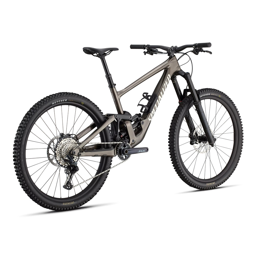 - ASOMBROSAMENTE RÁPIDA, SUBIENDO Y BAJANDO: Pisa a fondo los pedales y la nueva Enduro acelera mucho más rápido de lo que esperarías de una potente bicicleta de descenso. Para empezar, aumentamos el anti-squat, para que la suspensión resista mejor el balanceo del pedal. Después, para aumentar su eficiencia, redirigimos el ángulo de las vainas y las bieletas superiores del amortiguador para un diseño mucho más eficiente. ¿El resultado final? Menos balanceo, más velocidad.