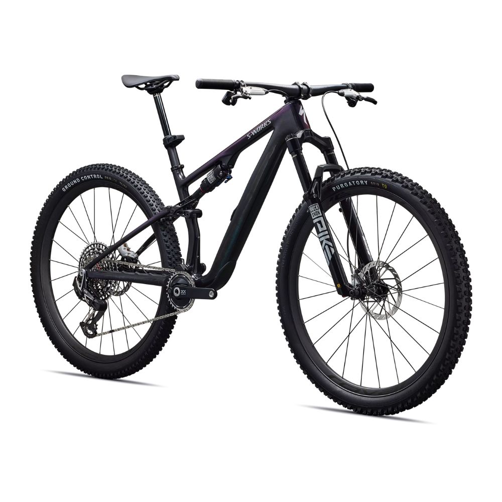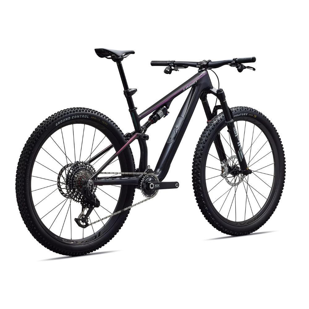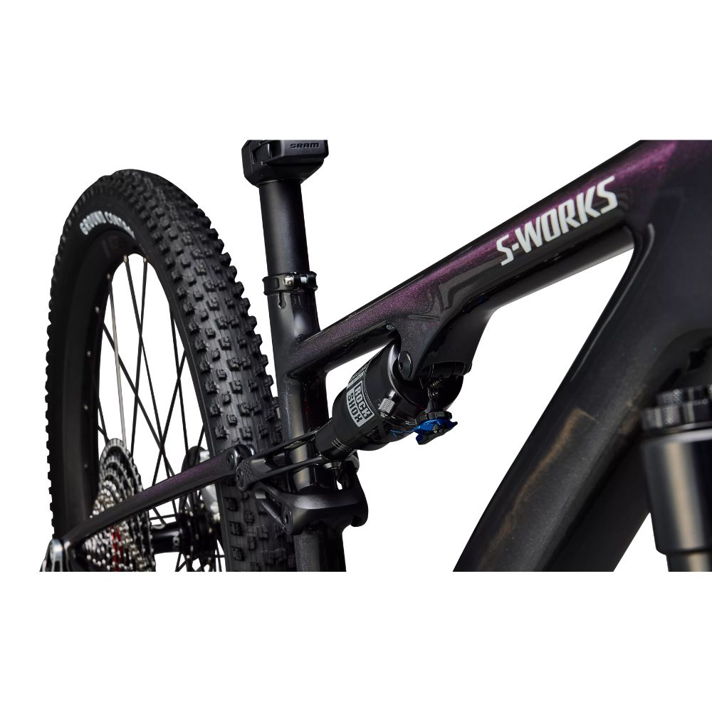 S-Works FACT 12m Carbon, Progressive XC Race Geometry, Rider-First Engineered™, almacenamiento SWAT en el tubo diagonal, pedalier roscado, puntera trasera compatible con UDH de 12×148 mm, cableado interno, 120 mm de recorrido, optimizado para transmisión inalámbrica y tija de sillín