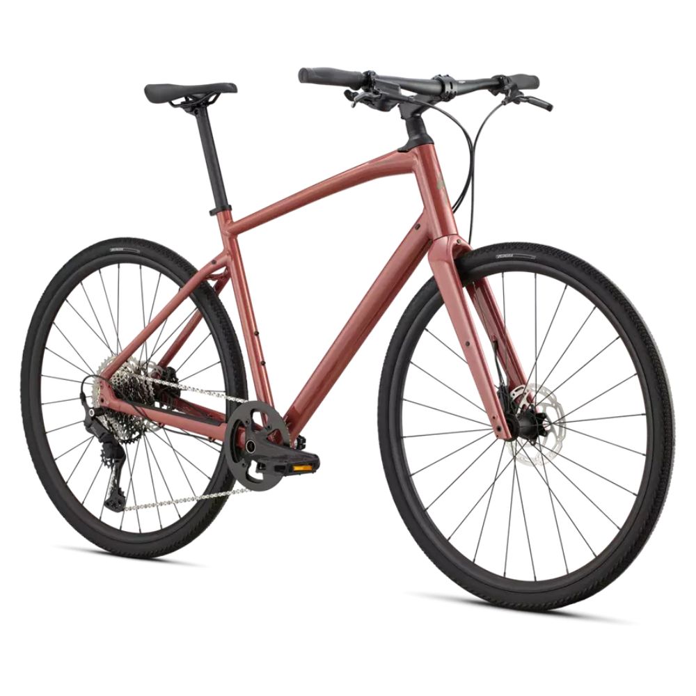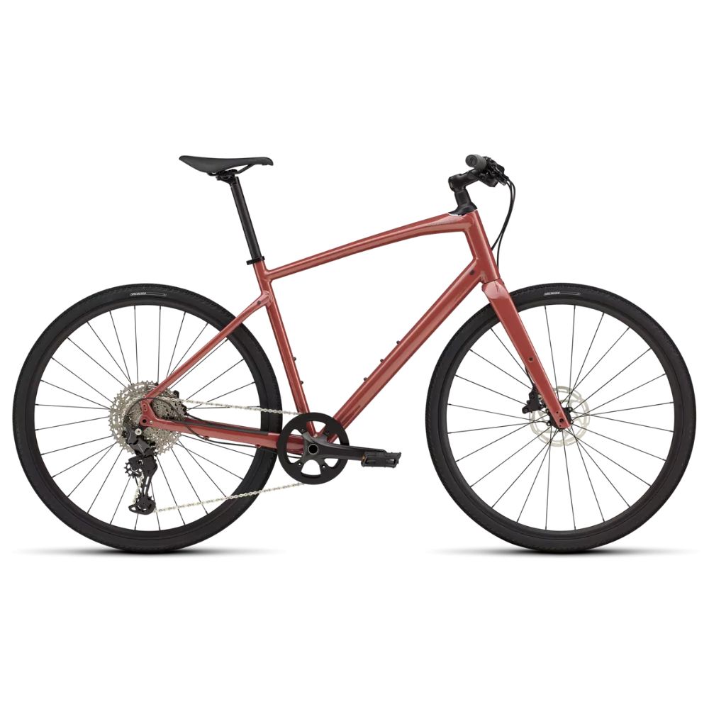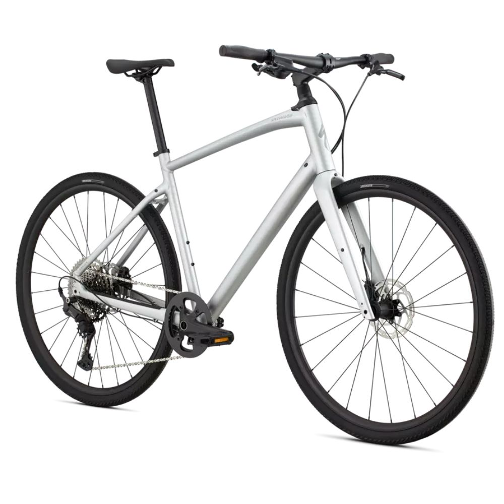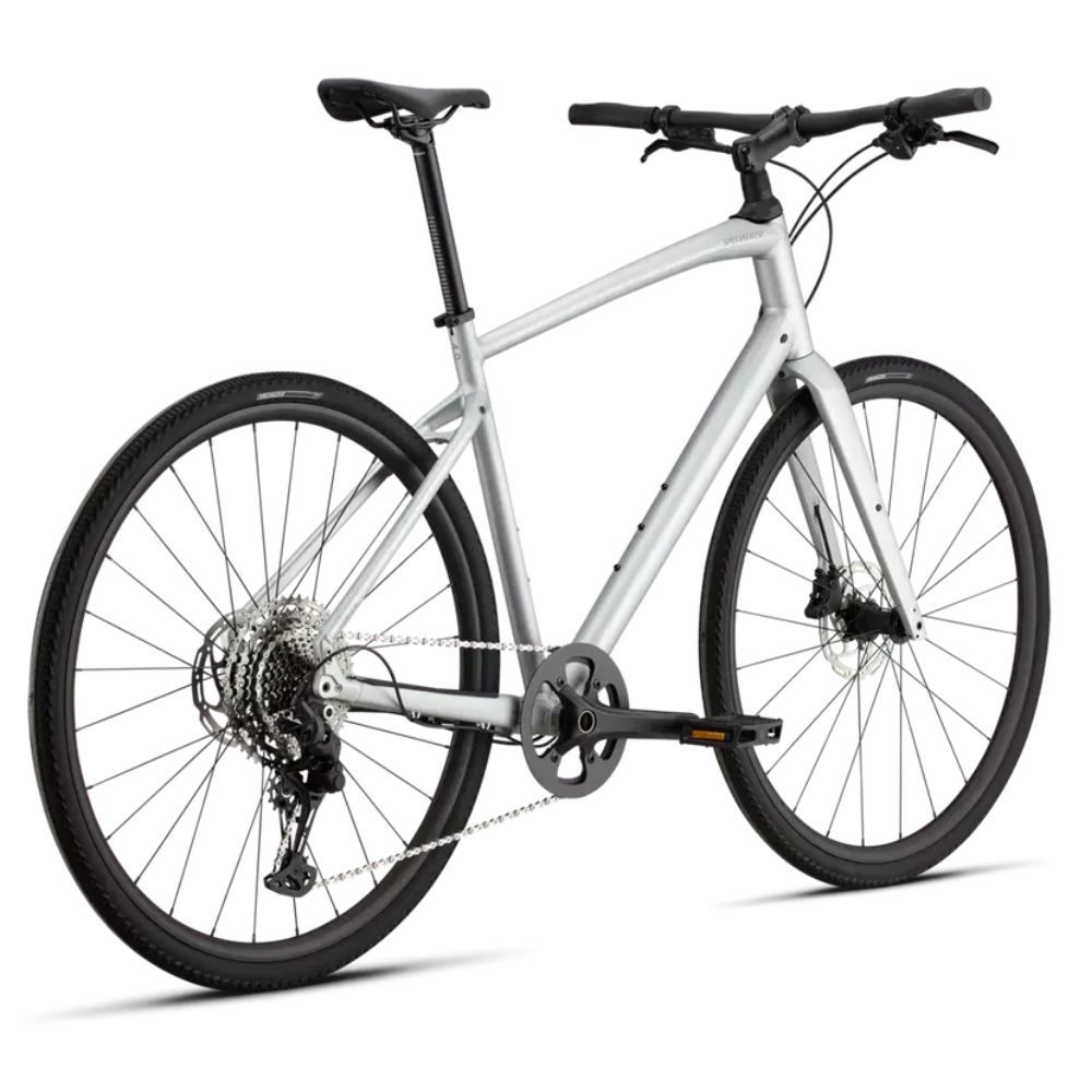 - Cuadro: Aluminio Specialized A1 SL Premium, geometría Fitness, tubos conificados manipulados, enrutamiento interno de cables, disco de montaje plano, eje pasante de 12×142 mm, soportes para portabultos/guardabarros Plug + Play